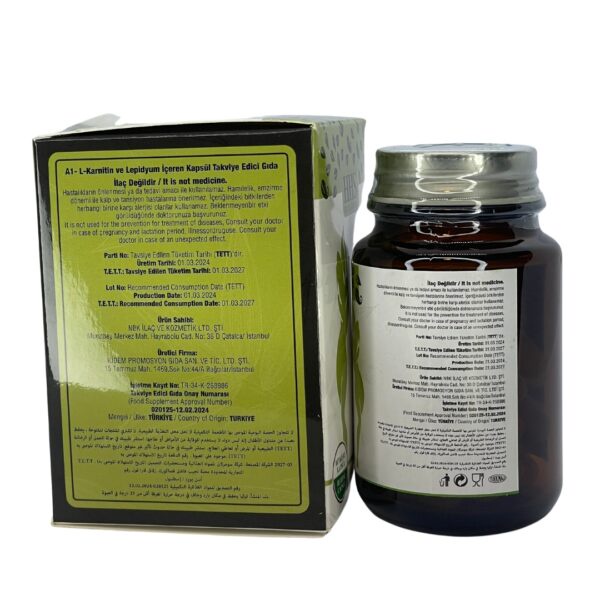 5.تحفيز التمثيل الغذائي: تساعد الكبسولات على تعزيز التمثيل الغذائي بفضل خصائص الكارنتين والليبيديوم، مما يزيد من سرعة حرق السعرات الحرارية.
